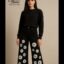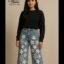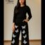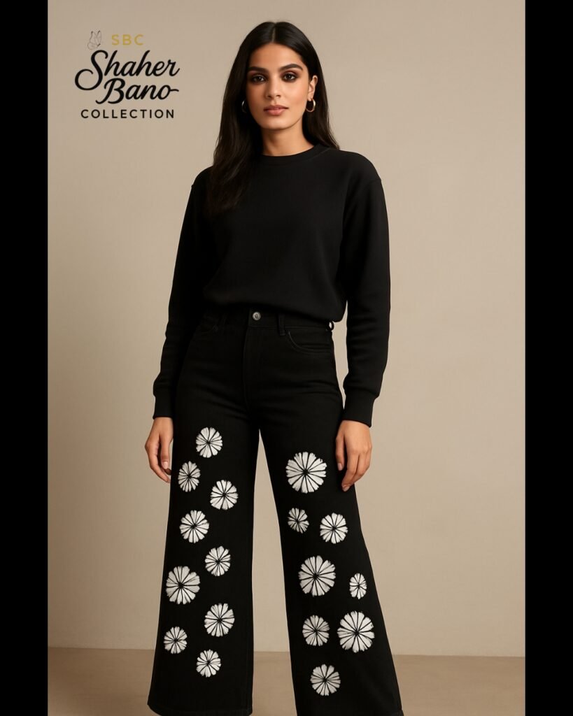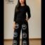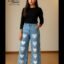 Black Floral Print Wide-Leg Flapper Denim Jeans