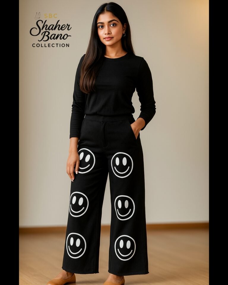 Black Smiley Print Wide-Leg Flapper Denim Jeans
