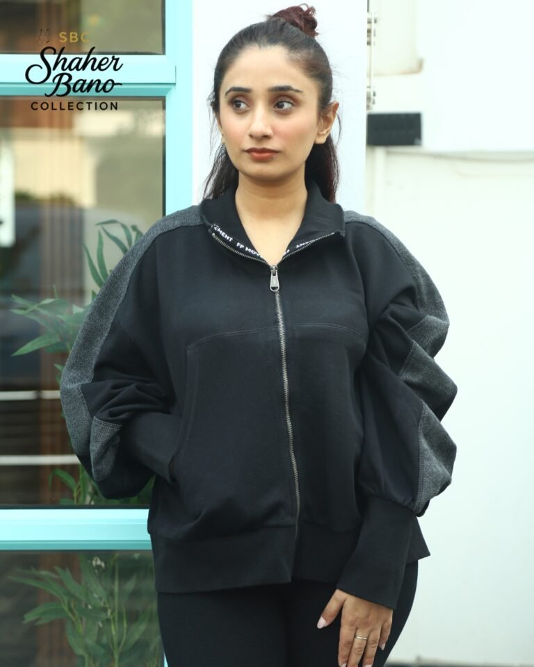 Drop Shoulder Black Zip-Up Jacket